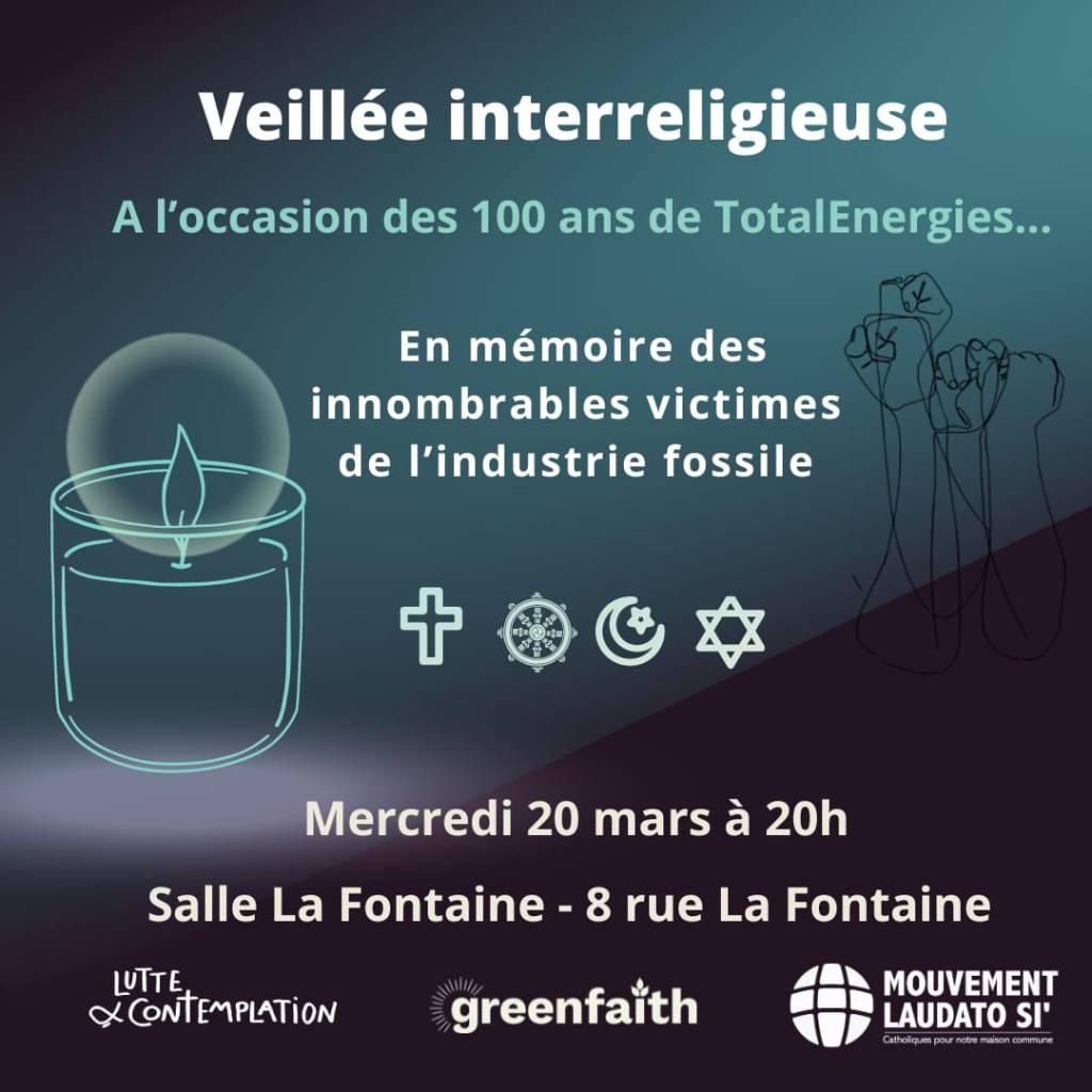 Organisée à l’occasion des 100 ans de Totalénergie, par Lutte et Contemplation, Greenfaith et le Mouvement Laudato si.