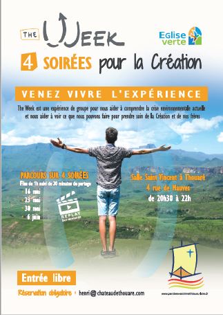 Le groupe de la paroisse Saint-Matthieu sur Loire organise 4 soirées les jeudi 16, 23 et 30 mai et le jeudi 6 juin, de 20 h 30 à 22 h, autour de The Week, salle Saint Vincent, 4 rue de Mauves, Thouaré. Inscription obligatoire auprès de Henri Ducellier.