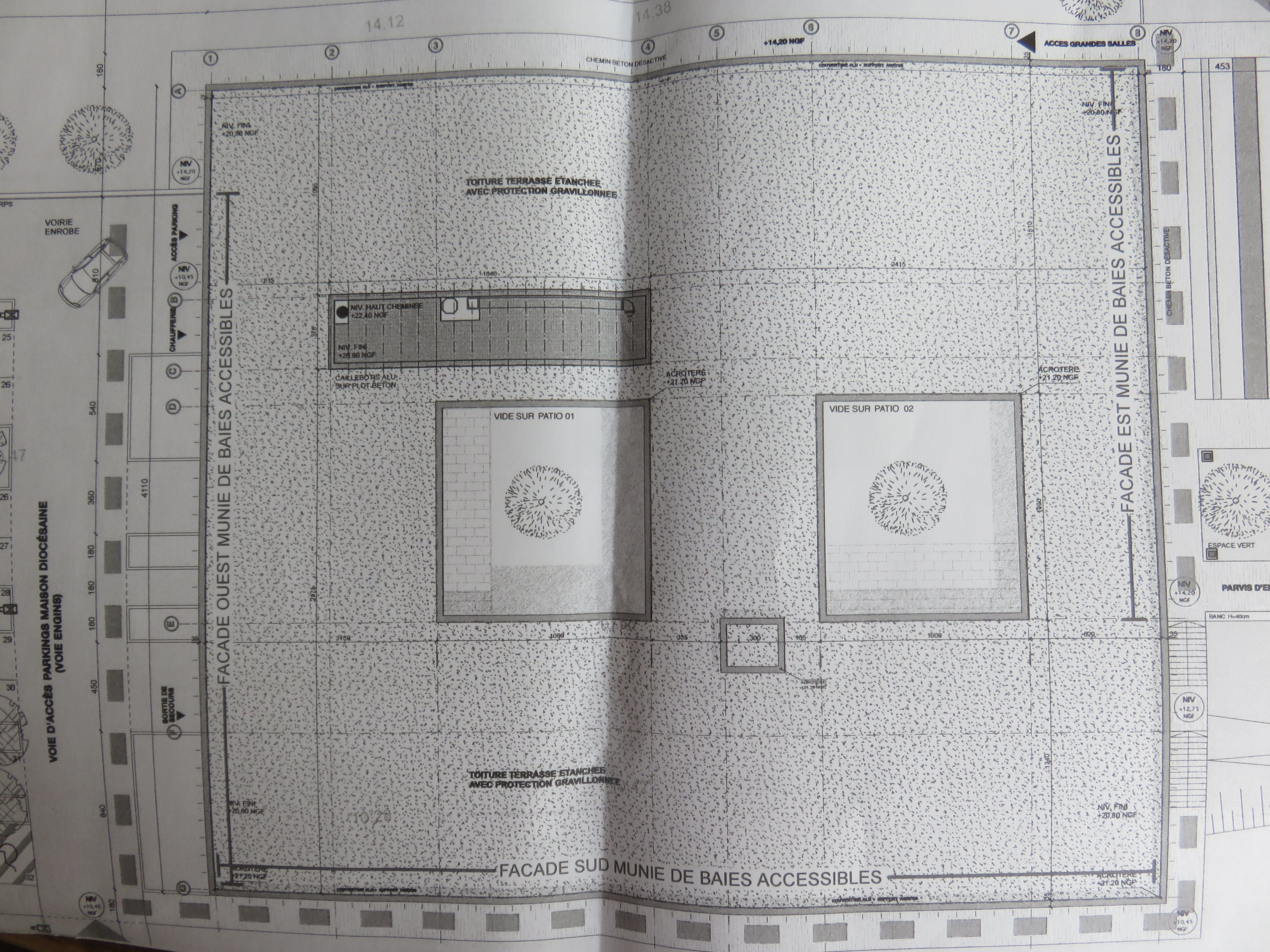 Maison diocésaine Saint Clair DOE étanchéité toit terrasse Plan d’exécution toit terrasse Plan de masse Étude du potentiel photovoltaïque Points d’ancrage