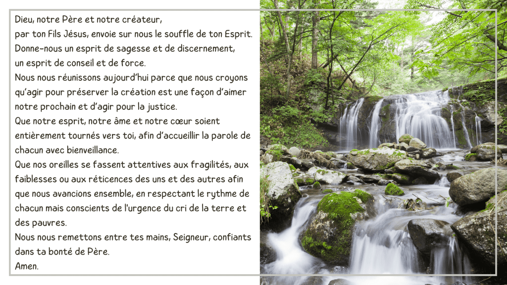 Proposition d’une prière d’ouverture d’une rencontre Église verte